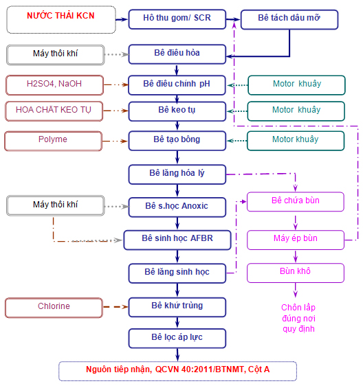 Sơ đồ khối công nghệ xử lý nước thải KCN